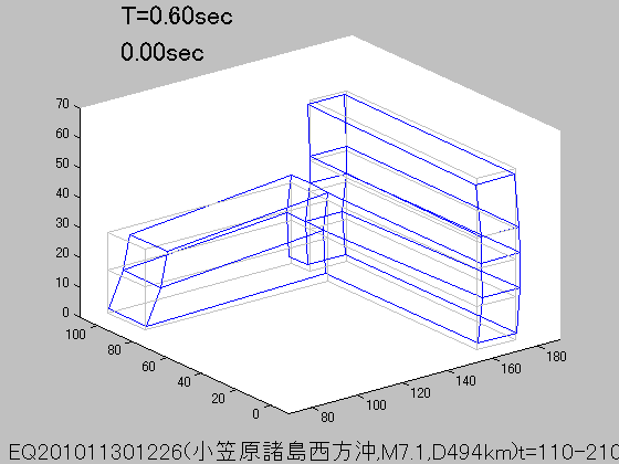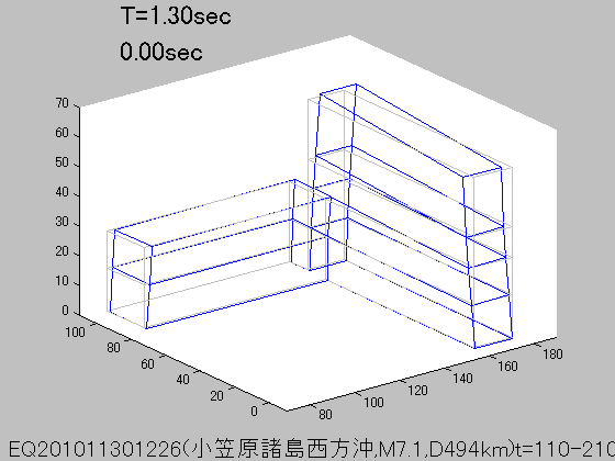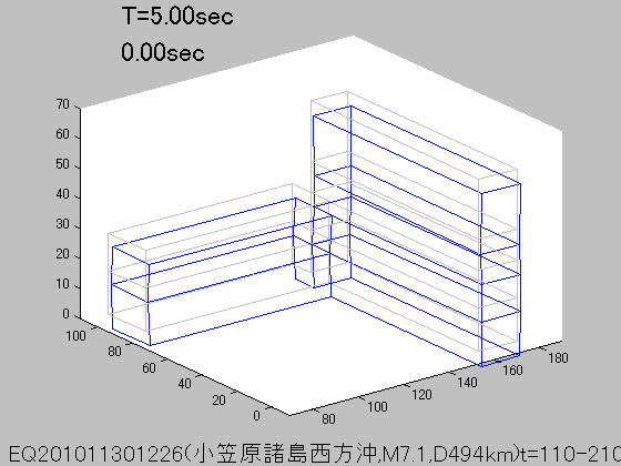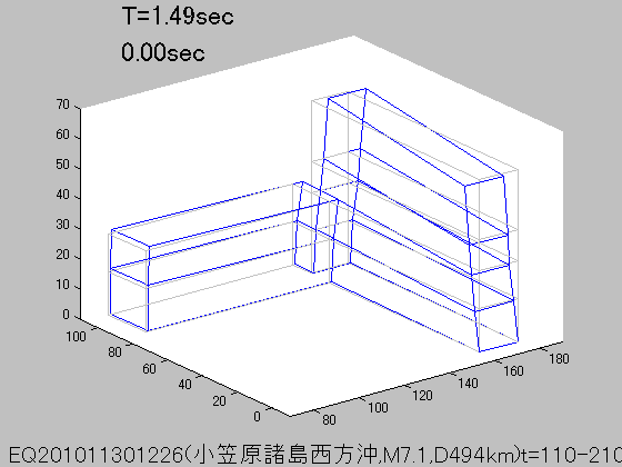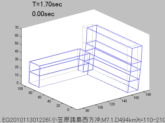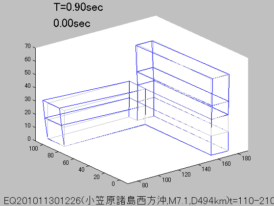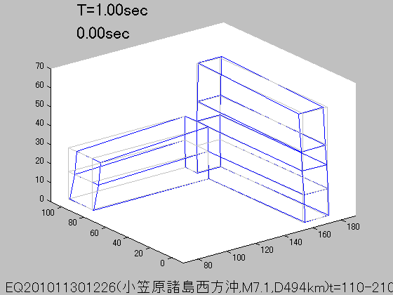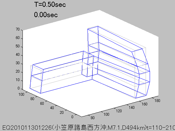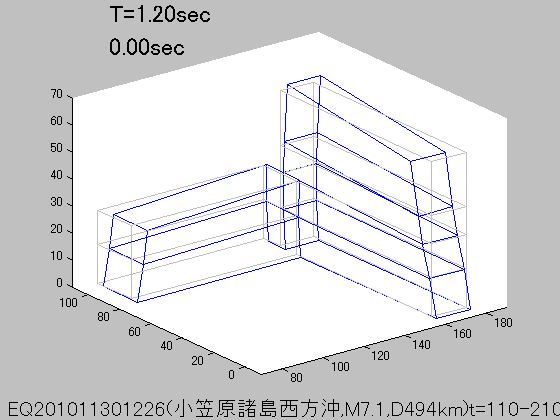 各周期Tにおける立体振動モード(S波初動から100秒間の記録を使用)