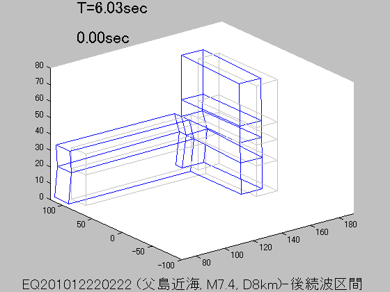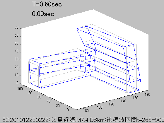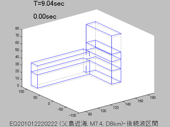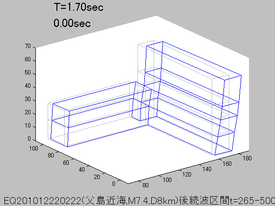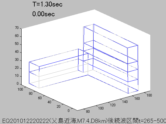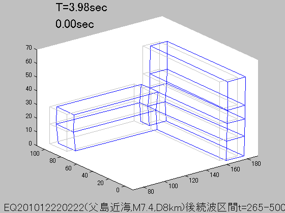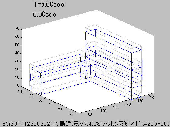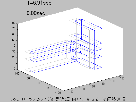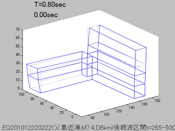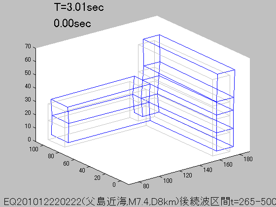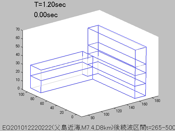 各周期Tにおける立体振動モード(後続波区間(t=265-500s)を使用,主成分は長周期表面波と考えられる)