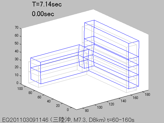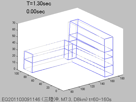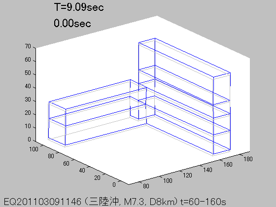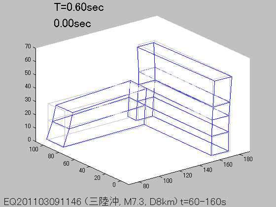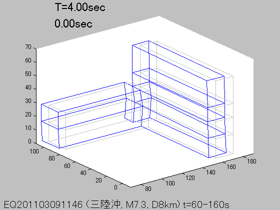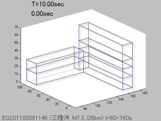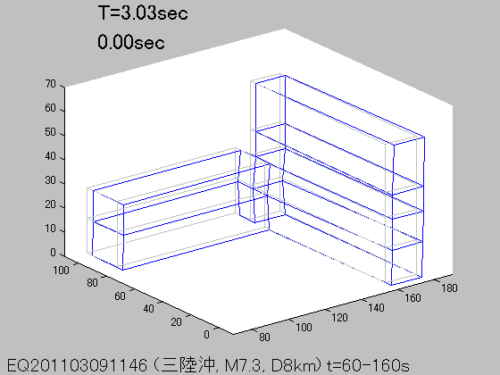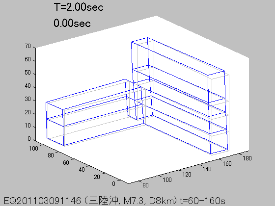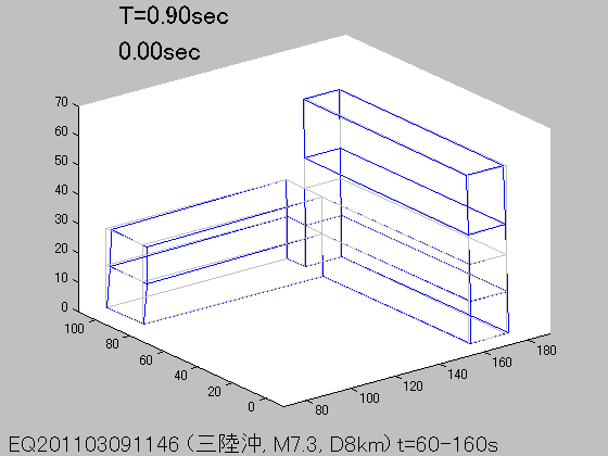 各周期Tにおける立体振動モード(S波初動から100秒間の記録を使用)