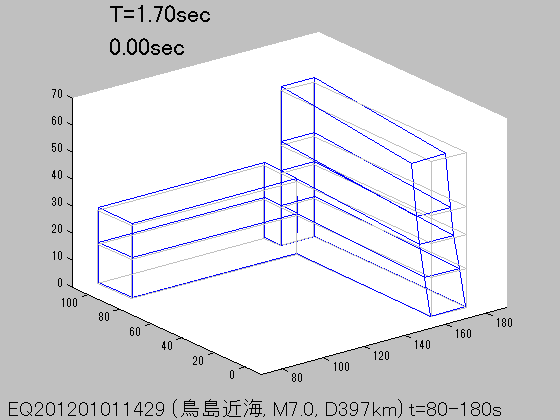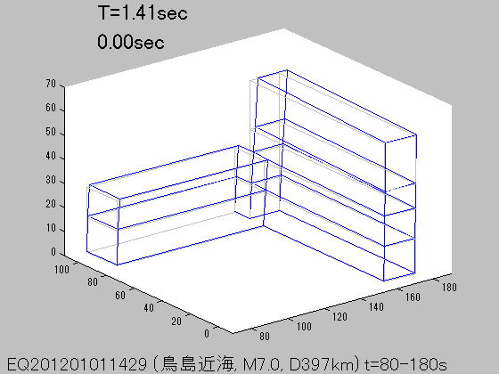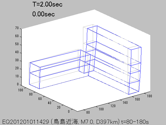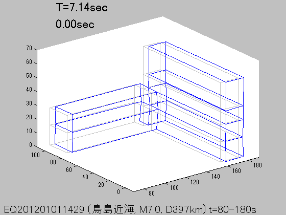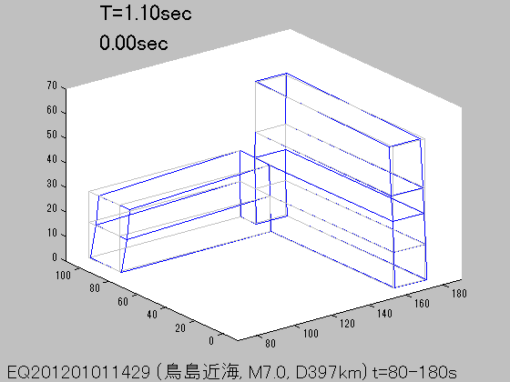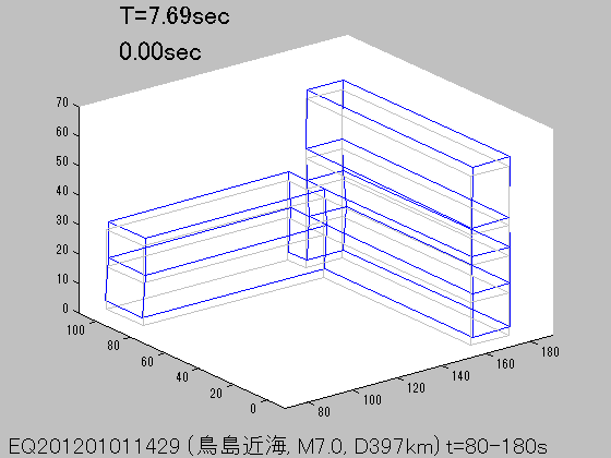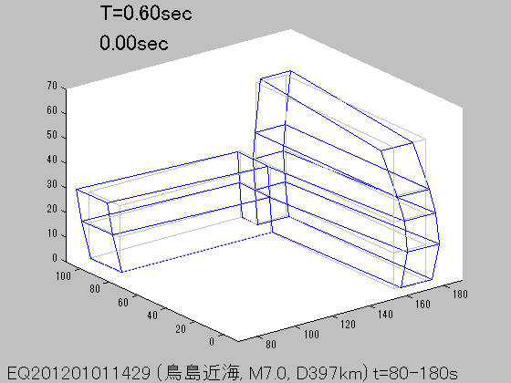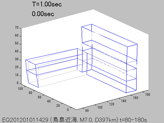 各周期Tにおける立体振動モード(S波初動から100秒間の記録を使用)