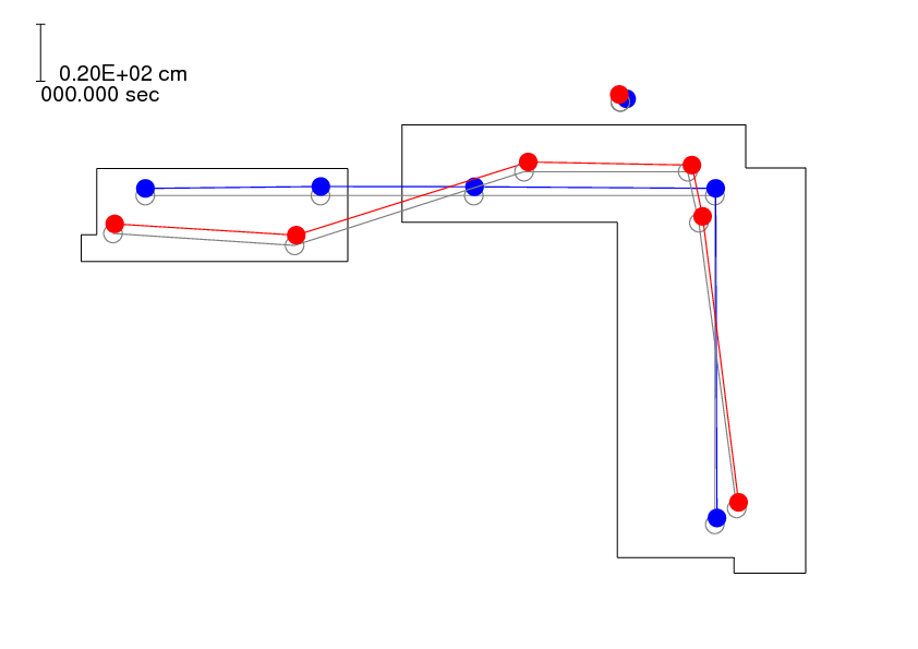t=0-150秒(※)の変位アニメーション ●免震装置の上の第一床スラブ上の地震計 ●基礎スラブ上の地震計 t=150-300秒(※)の変位アニメーション ※2011年3月11日14時48分53秒をt=0秒としている.